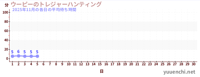 2025/11の一日平均待ち時間 (ウーピーのトレジャーハンティング)