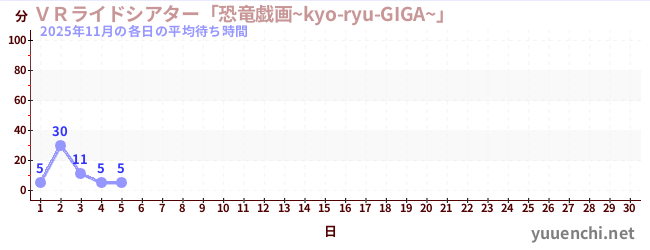 2025/11の一日平均待ち時間 (VRライドシアター「恐竜戯画~kyo-ryu-GIGA~」 )