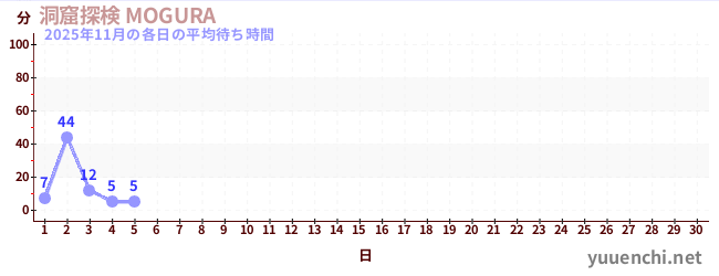 2025/11の一日平均待ち時間 (洞窟探検 MOGURA )