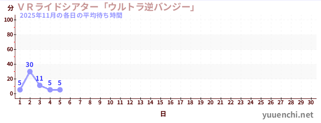 2025/11の一日平均待ち時間 (VRライドシアター「ウルトラ逆バンジー」 )