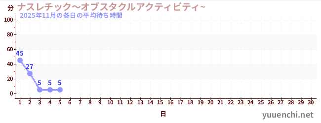 2025/11の一日平均待ち時間 (ナスレチック~オブスタクルアクティビティ~ )