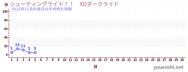 2025/11の一日平均待ち時間 (シューティングライド!! XDダークライド )
