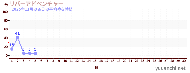 2025/11の一日平均待ち時間 (リバーアドベンチャー )