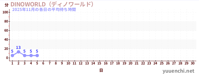 2025/11の一日平均待ち時間 (DINOWORLD(ディノワールド) )