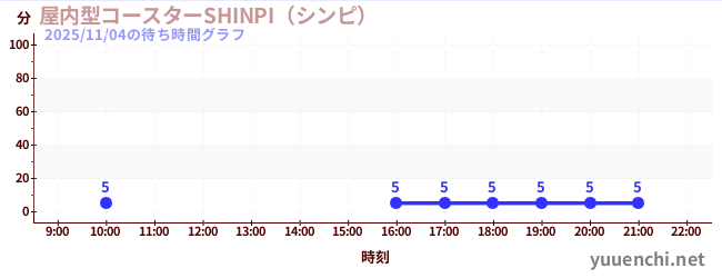 2025/11/04の待ち時間グラフ (屋内型コースターSHINPI(シンピ) )