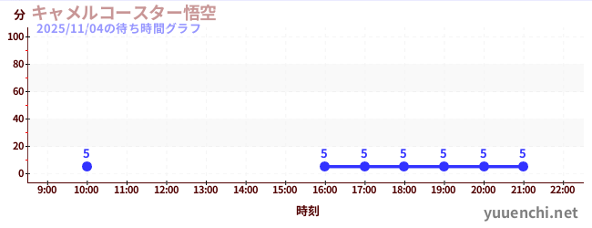 2025/11/04の待ち時間グラフ (キャメルコースター悟空 )