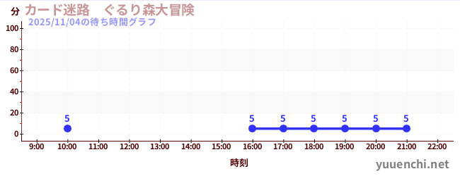 2025/11/04の待ち時間グラフ (カード迷路 ぐるり森大冒険 )
