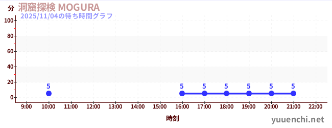 2025/11/04の待ち時間グラフ (洞窟探検 MOGURA )