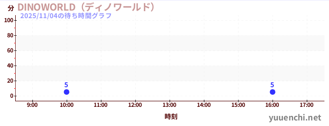 2025/11/04の待ち時間グラフ (DINOWORLD(ディノワールド) )