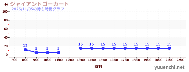 2025/11/05の待ち時間グラフ (ジャイアントゴーカート )