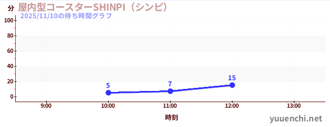 2025/11/10の待ち時間グラフ (屋内型コースターSHINPI(シンピ) )