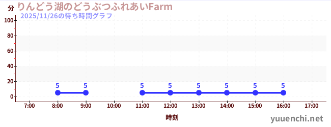 2025/11/26の待ち時間グラフ (りんどう湖のどうぶつふれあいFarm )