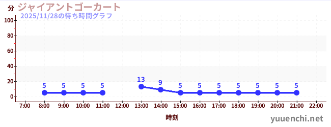 2025/11/28の待ち時間グラフ (ジャイアントゴーカート )