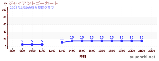 2025/11/30の待ち時間グラフ (ジャイアントゴーカート )
