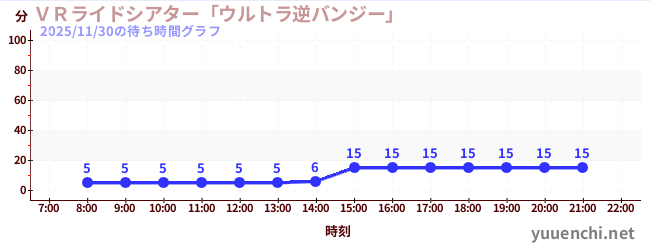 2025/11/30の待ち時間グラフ (VRライドシアター「ウルトラ逆バンジー」 )