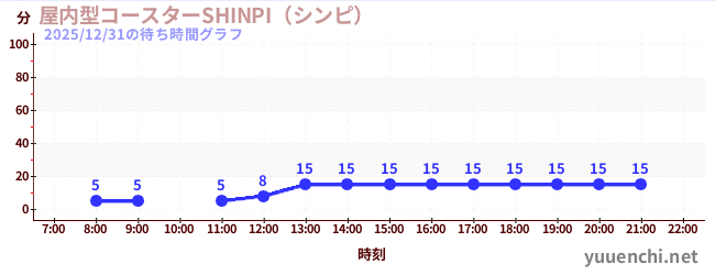 2025/12/31の待ち時間グラフ (屋内型コースターSHINPI(シンピ) )