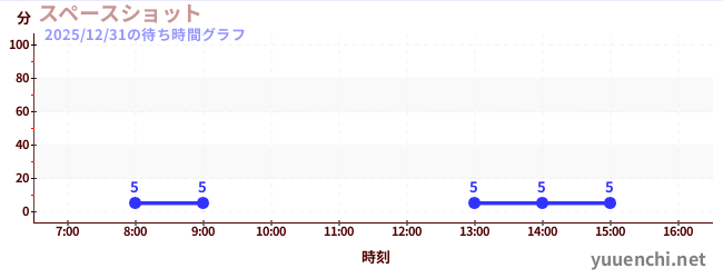 2025/12/31の待ち時間グラフ (スペースジェット )