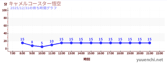 2025/12/31の待ち時間グラフ (キャメルコースター悟空 )