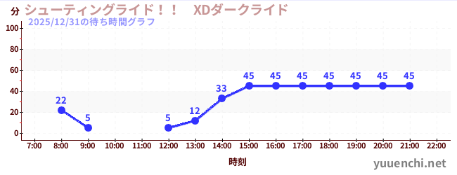 2025/12/31の待ち時間グラフ (シューティングライド!! XDダークライド )