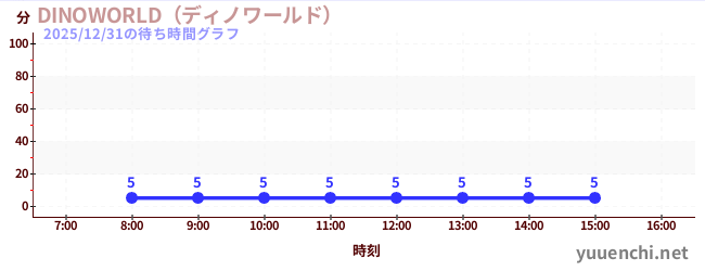 2025/12/31の待ち時間グラフ (DINOWORLD(ディノワールド) )