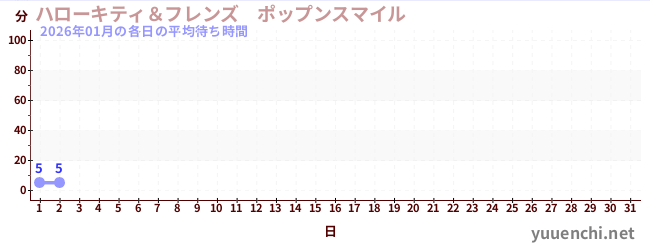 2026/01の一日平均待ち時間 (ハローキティ&フレンズ ポップンスマイル )
