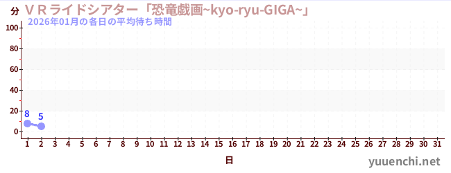 2026/01の一日平均待ち時間 (VRライドシアター「恐竜戯画~kyo-ryu-GIGA~」 )