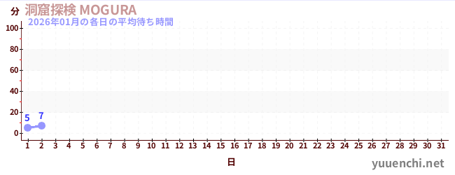 2026/01の一日平均待ち時間 (洞窟探検 MOGURA )