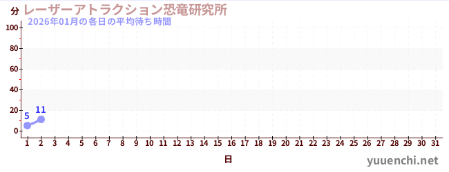 2026/01の一日平均待ち時間 (レーザーアトラクション恐竜研究所 )