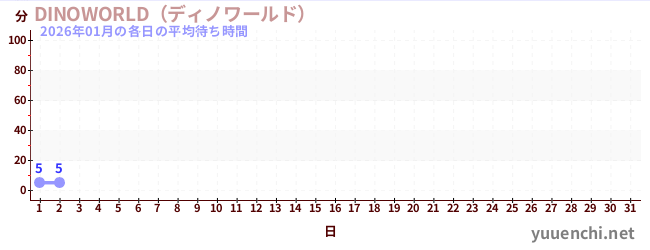 2026/01の一日平均待ち時間 (DINOWORLD(ディノワールド) )