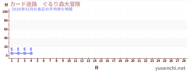 2026/02の一日平均待ち時間 (カード迷路 ぐるり森大冒険 )