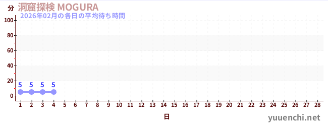 2026/02の一日平均待ち時間 (洞窟探検 MOGURA )