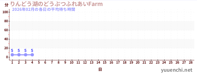 2026/02の一日平均待ち時間 (りんどう湖のどうぶつふれあいFarm )