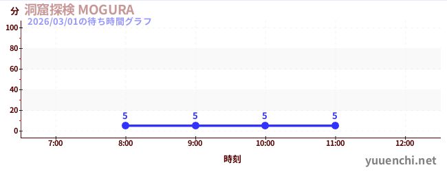 2026/03/01の待ち時間グラフ (洞窟探検 MOGURA )