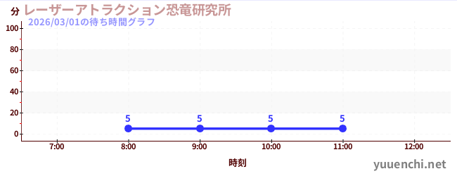 2026/03/01の待ち時間グラフ (レーザーアトラクション恐竜研究所 )