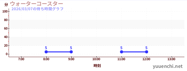 2026/03/07の待ち時間グラフ (ウォーターコースター )