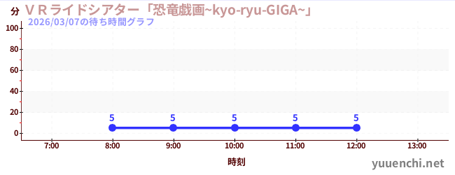 2026/03/07の待ち時間グラフ (VRライドシアター「恐竜戯画~kyo-ryu-GIGA~」 )