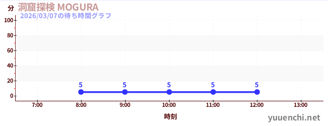 2026/03/07の待ち時間グラフ (洞窟探検 MOGURA )