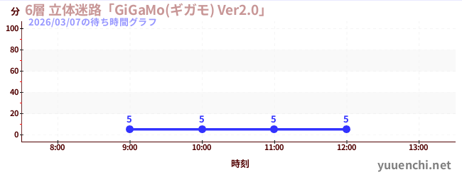 2026/03/07の待ち時間グラフ (6層 立体迷路「GiGaMo(ギガモ) Ver2.0」 )