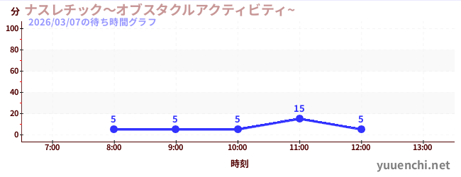 2026/03/07の待ち時間グラフ (ナスレチック~オブスタクルアクティビティ~ )