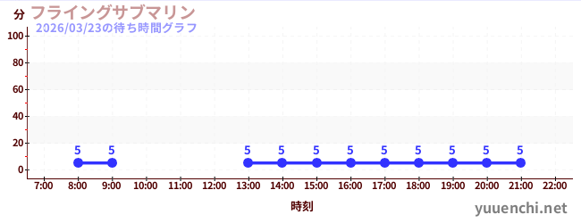 2026/03/23の待ち時間グラフ (フライングサブマリン )