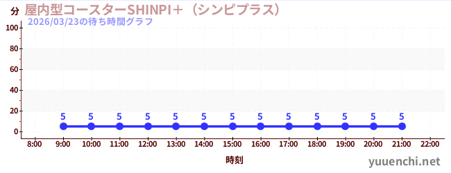 2026/03/23の待ち時間グラフ (屋内型コースターSHINPI+(シンピプラス) )