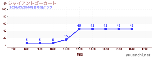 2026/03/28の待ち時間グラフ (ジャイアントゴーカート )