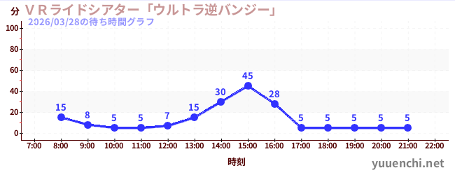 2026/03/28の待ち時間グラフ (VRライドシアター「ウルトラ逆バンジー」 )