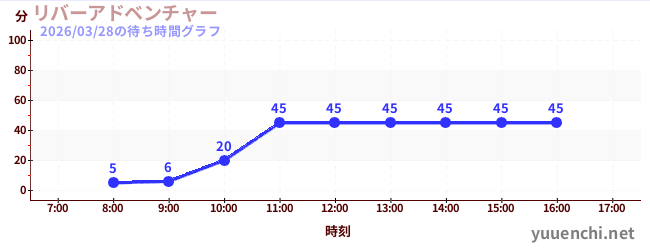 2026/03/28の待ち時間グラフ (リバーアドベンチャー )