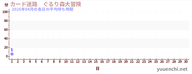 2026/04の一日平均待ち時間 (カード迷路 ぐるり森大冒険 )