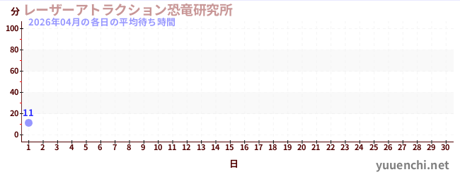 2026/04の一日平均待ち時間 (レーザーアトラクション恐竜研究所 )