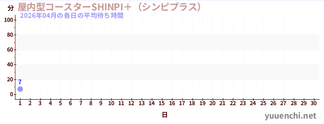 2026/04の一日平均待ち時間 (屋内型コースターSHINPI+(シンピプラス) )