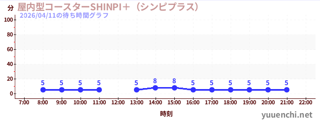 2026/04/11の待ち時間グラフ (屋内型コースターSHINPI+(シンピプラス) )