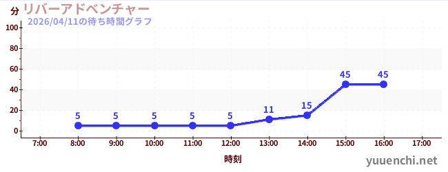 2026/04/11の待ち時間グラフ (リバーアドベンチャー )