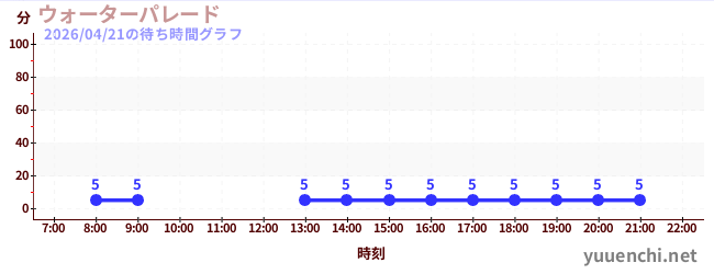 2026/04/21の待ち時間グラフ (ウォーターパレード )